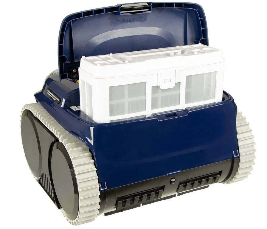 - Batéria má inteligentné riadenie výkonu, ktoré rovnomerne rozdeľuje energiu medzi všetky tri motory, vysávač tak nepreťažuje batériu, pohybuje sa plynule, s optimálnym sacím výkonom a precízne čistí celý bazén.