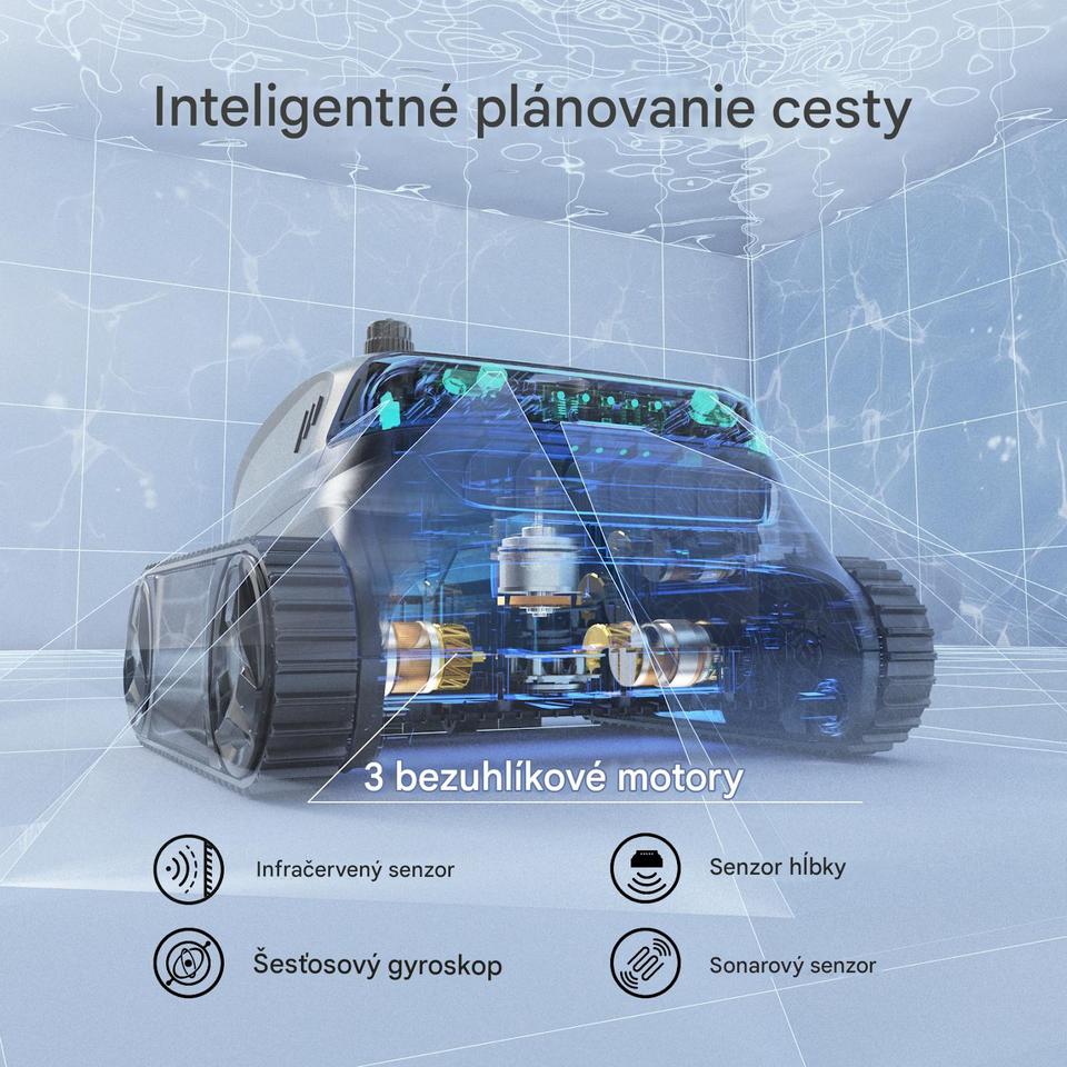 - Vysávač je vybavený infračervenými senzormi, šesťosovým gyroskopom a hĺbkovým senzorom