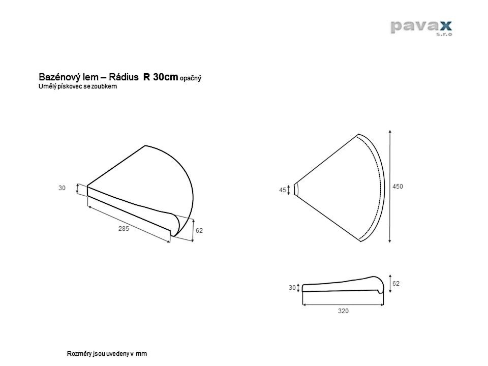 Bazénový lem umelý pieskovec slúži na obloženie (estetické zakončenie) vrchnej rádiusovej hrany bazéna. Je určený na obkladanie oblúkových strán väčšiny typov bazénov. Má tvar vlnky so spodným zúbkom, jeho povrch je hladký a vydarene imituje prírodný pieskovec.