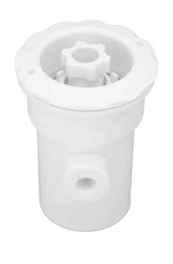 Hydromasážna tryska pre prefabrikovaný bazén. Skladá sa z trysky a prechodky s integrovaným prisávaním vzduchu.