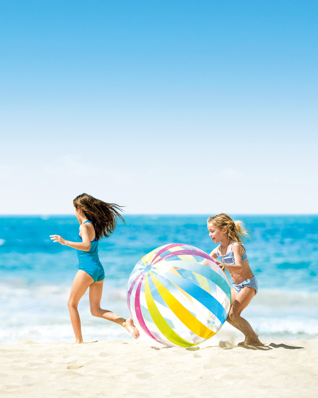 Nafukovacia lopta priemer 107cm s farebnými prúžkami vyrobená z pevného vinylu.